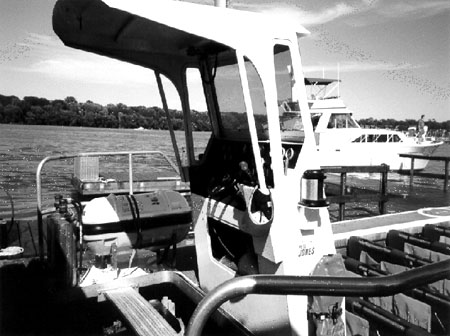 L'eau qui pénètre dans la section passagers peut s'accumuler temporairement jusqu'à la hauteur de la taille avant de s'écouler par les orifices d'évacuation antiretour situés à l'arrière, sur les côtés bâbord et tribord. Il n'y a pas d'autres sabords de décharge. Le poste de commande du gouvernail et des machines est placé à l'arrière, protégé des embruns par une enceinte partielle munie d'un pare-brise qui offre au conducteur une bonne visibilité dans toutes les directions. Il n'y a pas d'allée centrale. Du poste de barre, les membres d'équipage peuvent se rendre à l'avant du bateau en marchant sur les caisses de flottaison latérales de 0,8 m de largeur.