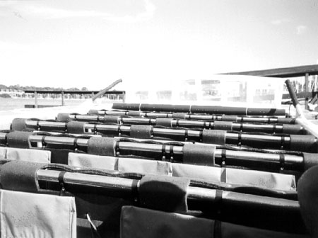 La section passagers comprend sept rangées de bancs coussinés de mousse. Les rangées sont abritées par les caisses de flottabilité latérales compartimentées intégrées au carénage du fond et des côtés. Juste devant chaque rangée de sièges, il y a, à portée de bras, une barre d'appui horizontale à laquelle les passagers peuvent se tenir pour rester assis pendant la traversée des eaux vives.