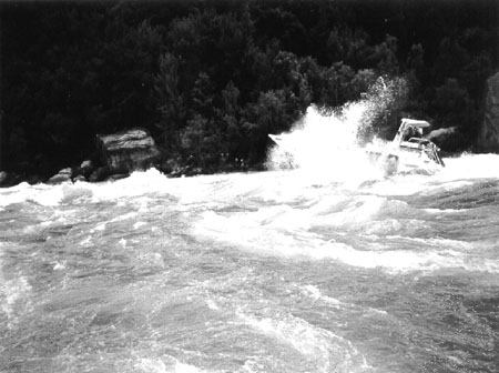 Les caractéristiques de manoeuvre du bateau et l'habileté du conducteur peuvent également avoir joué un rôle. La puissance fournie par les moteurs est instantanément transformée en mouvement du bateau - le bateau répond instantanément aux sollicitations du conducteur. Un usage excessif des moteurs ou de la barre peut provoquer un mouvement intempestif du bateau. Le conducteur a une fraction de seconde dans les rapides pour prendre les décisions liées au réglage du régime et de la direction. Si les circonstances avaient permis de ralentir l'allure, le claquement de l'avant qui a éjecté les passagers de leurs sièges aurait probablement été moins violent. L'excursion se déroulait selon l'horaire et rien n'indique qu'elle se soit déroulée à une vitesse excessive.
