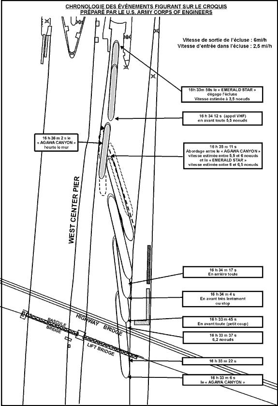 - Le « EMERALD STAR » a accéléré pour passer entre le « AGAWA CANYON » et le mur de l'écluse au lieu de ralentir ou d'arrêter afin de donner à l'autre navire plus de temps pour se tirer d'affaire.