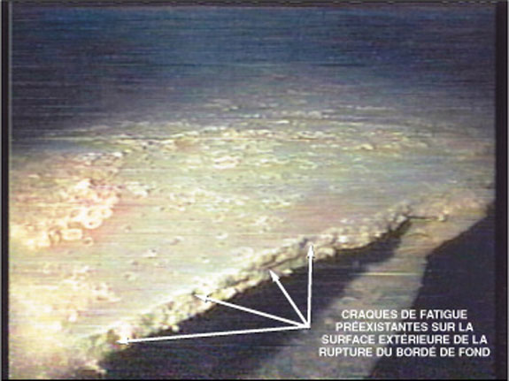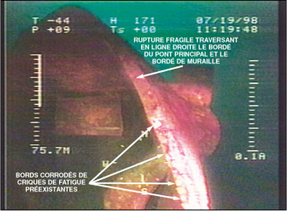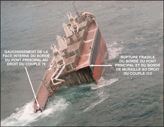 Les survivants ont signalé que certains membres de l'équipage avaient été saisis par la violence de ces dernières vibrations, qui ont précédé le déclenchement de l'alerte générale. Un peu plus tard, à leur arrivée sur le pont, ils constatent que le navire est brisé en deux. Tout l'équipage se trouve alors dans la partie arrière du navire.