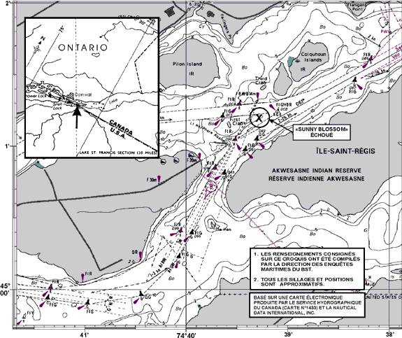 Le « SUNNY BLOSSOM » est un navire océanique dont les aménagements et la salle des machines sont situés à l'arrière. Il visite des ports canadiens et américains depuis plusieurs années autant sur la côte Atlantique que dans les Grands Lacs. Le navire possède les certificats, l'équipage et l'équipement qu'il est tenu d'avoir en vertu de la réglementation en vigueur. En plus de posséder l'équipement de navigation requis, il est équipé d'un système électronique de visualisation des cartes. Cependant cet équipement, acquis récemment, n'était pas encore opérationnel au moment de l'incident.