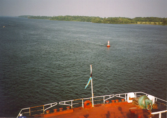 Vers 11 h 50, le capitaine quitte la timonerie pour prendre rapidement un repas avant les manoeuvres d'accostage. À ce moment-là, le navire est sur un cap au 241 °(G) sur l'alignement de l'île Cornwall. L'erreur du gyro-compas est d'environ plus 1o. L'apprenti-pilote appelle la Voie maritime d'Eisenhower sur la radio VHF pour signaler que le navire va quitter le chenal principal sous peu et transmet également l'heure prévue d'arrivée du navire au quai de Cornwall.