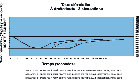 1438:05 Barre mise 5° de plus à droite Indicateur d'angle de barre se déplace vers la droite - 25° ou 30° Le pilote remarque une légère abattée sur tribord