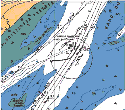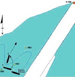Figure 1. Route approximative suivie par le Alcor dans le chenal jusqu'à l'endroit où il s'est échoué