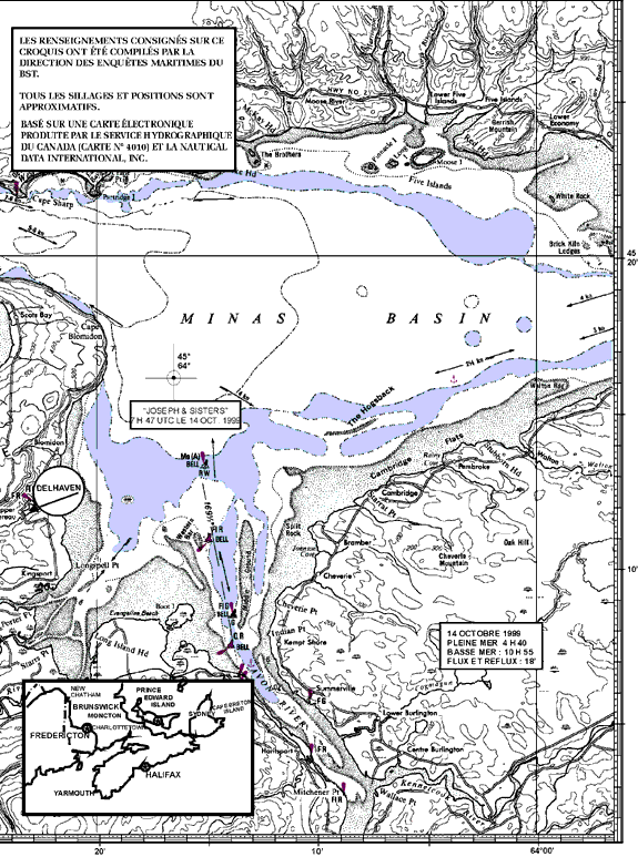 Alors qu'il se dirigeait vers un secteur au large de Parsboro dans le bassin Minas (Nouvelle-Écosse), pour mouiller 160 casiers à homard métalliques au début de la saison automnale de pêche du homard, le bateau de pêche « JOSEPH & SISTERS » a essuyé du mauvais temps et été envahi par trois vagues successives. Le bâtiment, lourdement chargé, a chaviré, et les casiers à homard qui n'étaient pas saisis sont tombés à la mer. Quatre membres de l'équipage qui étaient assis sur les casiers ont aussi été projetés par-dessus bord. Après que le navire inondé se soit partiellement redressé, le propriétaire/patron a réussi à sortir de la timonerie. Peu après, le navire a coulé sur cul. Quatre des cinq membres de l'équipage ont été repêchés. Le cinquième manque à l'appel et on présume qu'il s'est noyé.