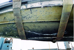 - les oeuvres vives, la quille et le bouchain présentaient des rayures profondes
