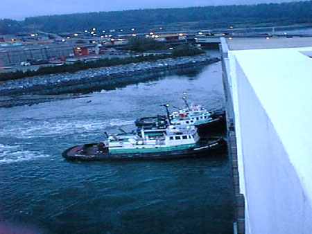 - l'assurance que deux remorqueurs d'amarrage à deux hélices seront disponibles;