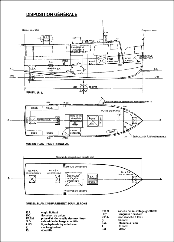 - installation dans le pont principal, derrière le capotage du moteur principal, d'un panneau d'accès de 430 mm sur 680 mm, fermé par un panneau de bois affleurant dépourvu de dispositifs de fixation ou de joints d'étanchéité;