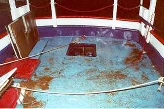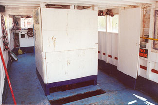Le panneau d'écoutille original fait en acier et sa hiloire étanche de 75 mm de hauteur, placés à l'extrémité arrière du pont principal, ont été supprimés et remplacés par un panneau d'écoutille en bois qui était encastré dans le pont, de façon qu'on dispose d'une surface libre et plane dans la partie réservée aux sièges des passagers. Le panneau de bois affleurant n'était pas muni de dispositifs de fixation ni de joints d'étanchéité.
