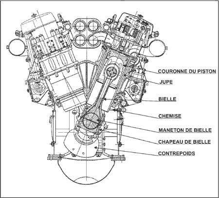Quand on fait face au volant-moteur, en partant de l'arrière, les blocs-cylindres 1 à 6 sont sur bâbord alors que les blocs-cylindres 7 à 12 sont sur tribord. Les bielles sont numérotées et estampées de 1 à 12, correspondant à leur bloc-cylindres respectif.