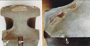 À titre d'exemple, le constructeur SEMT Pielstick recommande que les bielles soient contrôlées périodiquementNote de bas de page 8, et il recommande qu'après 24 000 heures de fonctionnement, on procède à un essai de ressuage sur la zone dentelée, étant donné que cette partie est la plus propice à la formation de fissures. En l'occurrence, l'analyse du BST faite sur le chapeau de bielle a révélé la présence de fissures dans la zone dentelée, ce qui illustre l'importance de se conformer aux méthodes d'entretien recommandées par le constructeur.