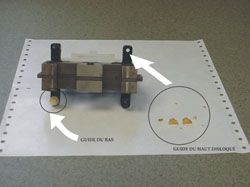 Des morceaux de polymère jaunâtre, provenant de l'un des guides de ressort, étaient éparpillés dans le boîtier du contacteur et un des guides était disloqué (Photo 1). Le polymère peut se détériorer s'il est exposé longtemps aux produits chimiques, à la chaleur, au froid, aux contraintes, aux rayons solaires, à l'oxygène, à l'humidité ou aux polluants contenus dans l'atmosphère. Tous ces facteurs, soit individuellement ou combinés, modifient la composition chimique de la matière. La fragilisation en surface, le jaunissement, le craquement, la perte d'élasticité et de robustesse sont tous des signes de détérioration chimique.