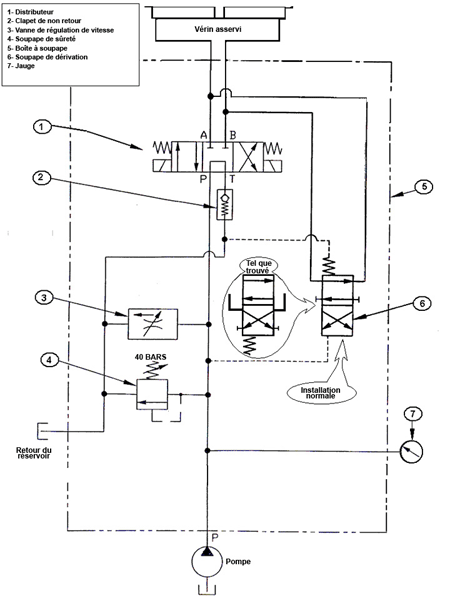- la soupape de dérivation hydraulique de chacun des vérins asservis était installée correctement;