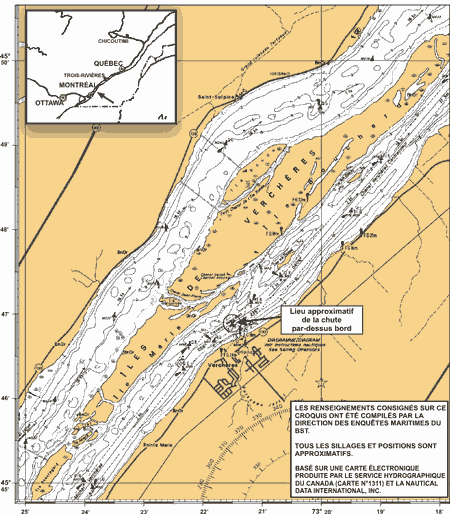 Les vents étaient calmes et la visibilité était bonne. Le courant du fleuve Saint-Laurent était de 2 noeuds et portait au 045° V. La température de l'eau était de 21 °C environ et la température de l'air de 22 °C.