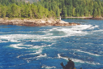 Il est dangereux pour tout navire de naviguer sur les rapides Sechelt sauf vers l'étale de courantNote de bas de page 4.