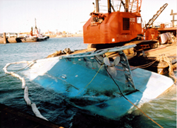 À 12 h 30, les opérations de plongée dans le bateau ont été suspendues lorsque les personnes sur place ont déterminé que la sécurité des plongeurs était exposée à un risque indu en raison d'une combinaison de facteurs : le bateau chaviré; son équipement suspendu; les débris.