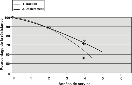Tous les matériaux et composants utilisés dans la construction des radeaux de sauvetage doivent résister à la détérioration due aux intempéries pendant la mise à poste du radeau sur le navire et l'exposition à l'eau de mer. En outre, la résistance au déchirement et à la traction des textiles doit être testée et les résultats des essais doivent être conservésNote de bas de page 12. Les exigences en matière de résistance se résument comme suit :