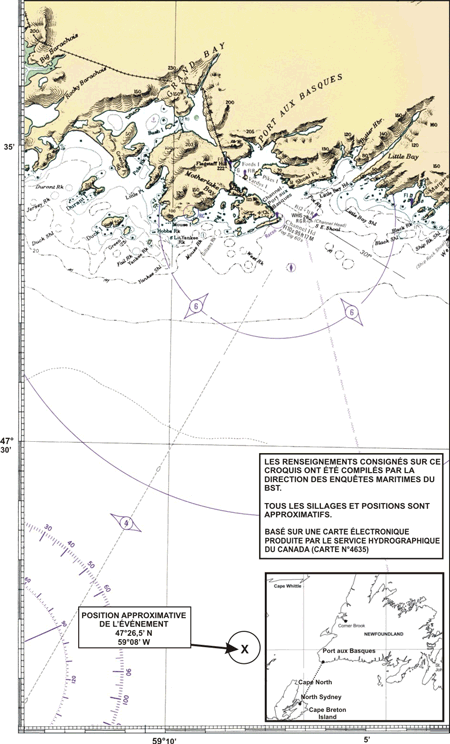 Vers 23 h 27, on informe les Services de communication et de trafic maritimes à Port aux Basques de l'événement et on demande les services du corps local de pompiers volontaires à son arrivée.