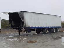 - Le contenu de la remorque d'une entreprise de déménagement et d'entreposage a subi de lourds dommages.