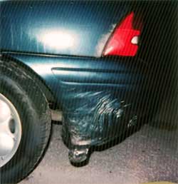 - Un véhicule personnel a subi des dommages causés par la chaleur à son pare-chocs arrière, son feu de signalisation arrière gauche et ses pneus arrière.