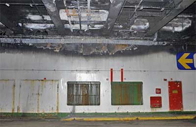 L'incendie a été découvert alors qu'il brûlait dans un des camions à semi-remorque se trouvant sur le pont-garage 1, mais l'origine et la cause précises de l'incendie n'ont pas été déterminés. Le navire a subi les avaries suivantes, entre autres :