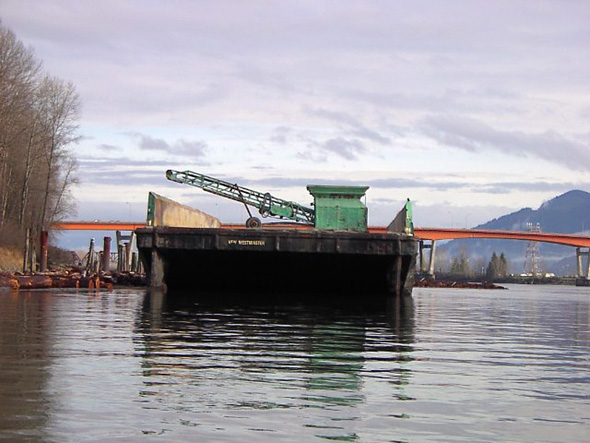 Deux ponts franchissent le fleuve Fraser à Mission : un pont des chemins de fer CP et, 500 m à l'ouest, le pont de la route 11. Le pont routier a une travée fixe avec un dégagement prescrit de 19 m. Le pont ferroviaire est plus bas; il est soutenu par 13 piliers de béton et est doté d'une travée pivotante, près de la rive sud, permettant le passage de navires à fort tirant d'air. Le trafic maritime ayant un faible tirant d'air, comme le Tiger Shaman et le Packmore 4000, empruntent le chenal sous la travée fixe du pont ferroviaire entre les piliers 5 et 6 depuis la rive nord.