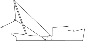 Lorsque l'attirail de pêche est déployé, l'axe du câble peut ne pas être dans le plan axial du bateau et alors engendrer un moment d'inclinaison transversal qui augmentera avec l'angle de bande.