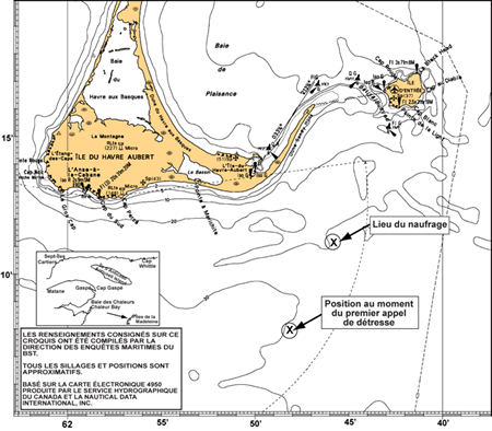 Dans la matinée du 24 mars 2005, on termine les derniers préparatifs à bord du Justin M en vue du voyage de Port Saunders (Terre-Neuve) aux îles de la Madeleine (Québec) dans le golfe du Saint-Laurent (voir l'annexe A) pour participer à la chasse au phoque annuelle. De nombreux bateaux commencent à appareiller tard dans la soirée du 24 mars, et au lieu de partir le 25 mars comme prévu, le capitaine du Justin M décide d'accompagner le groupe. Le bateau appareille vers minuit le 24 mars et arrive à la banquise au sud des îles de la Madeleine à 15 h 30, heure normale de l'Est (HNE)Note de bas de page 2, le 25 mars. Un troupeau d'environ 300 phoques est repéré presque immédiatement, et le capitaine décide de maintenir son bateau à proximité de ce troupeau en attendant l'ouverture de la chasse au phoque prévue au lever du jour le 29 mars. Cependant, en raison de la pression des glaces qui s'exerce sur le bateau, provoquée par un renforcement du vent, le capitaine doit manoeuvrer pour rejoindre un chenal libre à la recherche d'autres phoques.