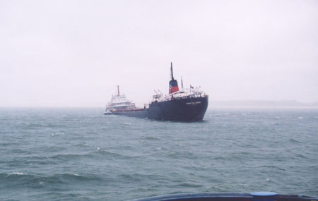 Peu après l'échouement, le premier officier sonde tous les ballasts y compris le coqueron avant, et avise le capitaine et le pilote qu'il y a une voie d'eau dans le coqueron avant et le ballast no 1 tribord. Pendant ce temps, on rétablit l'alimentation électrique à l'appareil de propulsion, et l'ancre bâbord est mouillée avec deux maillons à la mer.