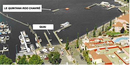 Vers 21 h 15 le 8 juin 2005, l'équipage de deux personnes, après avoir conduit le Quintana Roo depuis une marina, accoste bâbord à quai, cap vers la rive, à un quai public de Kelowna, et amarre l'embarcation à l'avant et à l'arrière avec deux câbles.