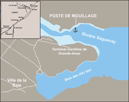 L'Administration portuaire du Saguenay (Port Saguenay) est gestionnaireNote de bas de page 3 du terminal de Grande-Anse, et les opérations de manutention des marchandises sont assurées par la compagnie d'arrimage Terminaux portuaires du Québec inc.