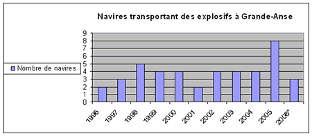 Les pratiques courantes de déchargement au terminal de Grande-Anse dans le cas des navires transportant des matières explosibles sont décrites ci-après. Ces pratiques tiennent compte des pratiques qui prévalaient au moment de l'événement et des mesures adoptées par la suite en mai 2006Note de bas de page 17.