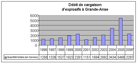 Depuis 1996, le terminal, qui a la plus grande capacité d'entreposage d'explosifs en transit dans un port au CanadaNote de bas de page 4, a vu ses activités de transport et de manutention d'explosifs augmenter de 500 % (voir l'Annexe C).