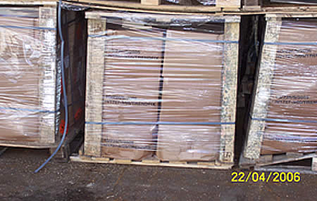 Tous les emballages endommagés sont remplacés par des emballages neufs fournis avec la cargaison (lorsque disponible), ou par d'autres cartons qui sont ensuite marqués à la main. Cependant, contrairement au Code maritime international des marchandises dangereuses (Code IMDG), les marchandises sont souvent remballées sans emballage de secoursNote de bas de page 18 et sans les instructions du fabricant des cartons. Les petits dommages sont souvent réparés avec du ruban adhésif ou en recouvrant la palette au complet d'un plastique d'emballageNote de bas de page 19. Depuis mai 2006, les marchandises sont remballées suivant les recommandations et sous la supervision de l'expert présent sur les lieux.
