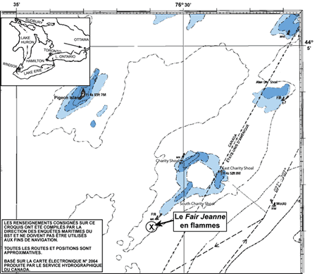 Vers 18 h 30, huit navires sont sur les lieux, dont le bateau-pompe Last Chance, de Clayton (New York) aux États-Unis, ainsi qu'un hélicoptère et un avion Hercules de recherche et sauvetage du Centre de Trenton (Ontario). En s'approchant du Fair Jeanne, les pompiers du Last Chance aperçoivent de la fumée grise qui s'échappe du navire (voir Photo 4).
