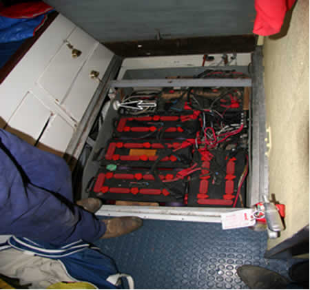 - Le compartiment des batteries était situé à l'intérieur des emménagements et n'était pas bien ventilé, ce qui aurait pu permettre aux vapeurs nocives des batteries au plomb de se répandre dans les emménagements.