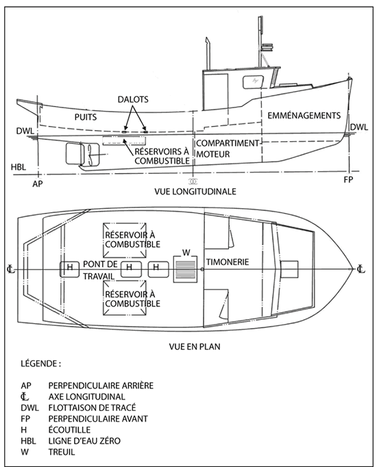 - Dans les calculs des conditions de chargement, il faut tenir compte du poids des filets et des engins de pêche mouillés.