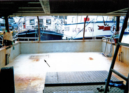 Le pont de travail arrière était entouré d'un pavois solide formant un puits. Une porte à charnières sur le côté tribord donnait accès à la timonerie, et une porte sur le pont donnait accès à la salle des machines. Une porte à charnières étanche dans la cloison arrière de la cale à poisson donnait accès au compartiment de l'appareil à gouverner.
