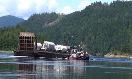 Franchissement des rapides Sechelt et engagement du remorqueur