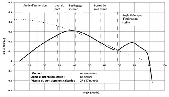 | 73,5 | 37,1 | 49,8 | Immersion de la porte bâbord de la timonerie (74,2°) |