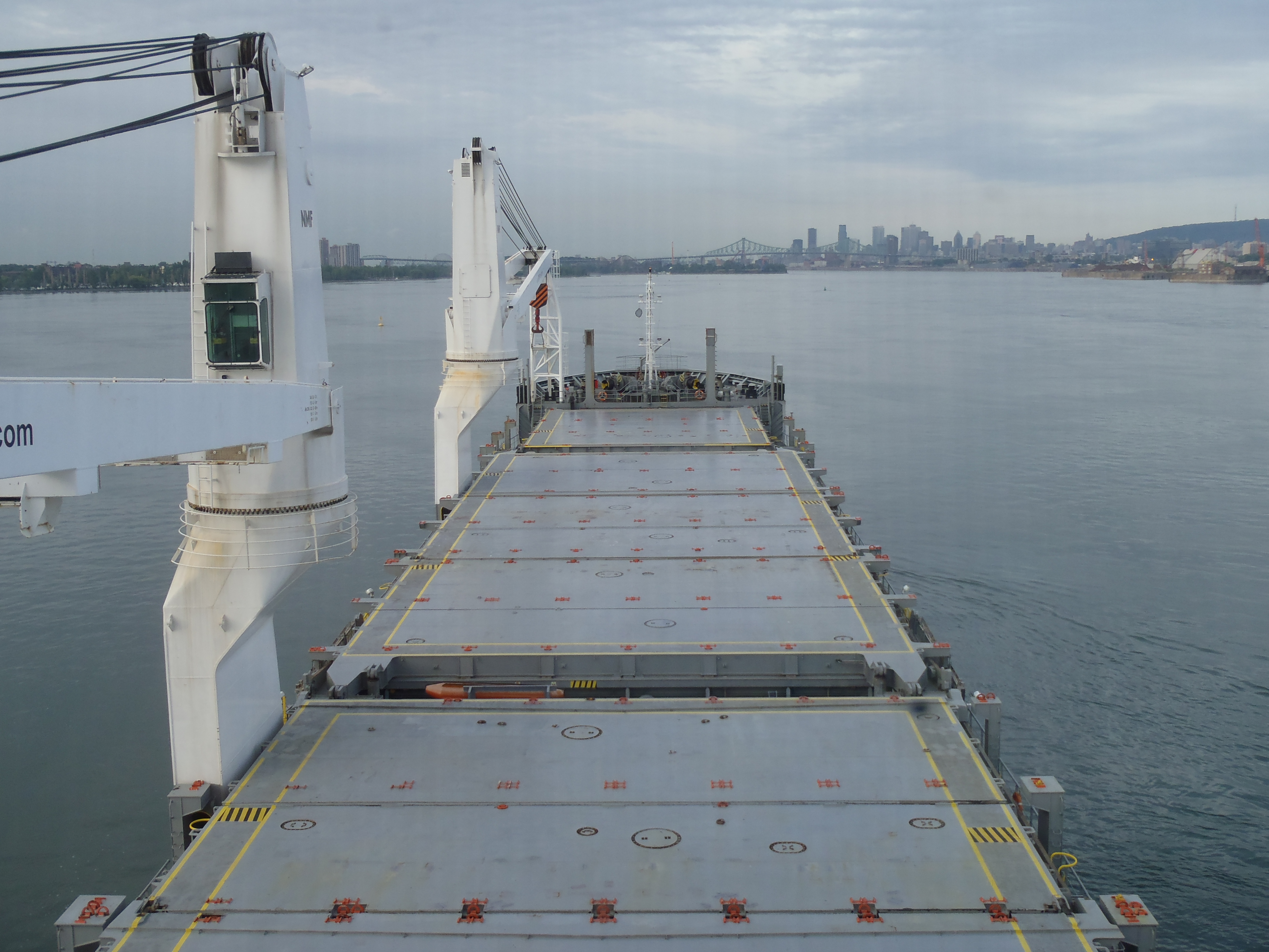 À 3 h 03, le pilote no 1 a ordonné au timonier de gouverner vers le feu installé au centre de la travée du pont Jacques-Cartier afin de ramener le navire vers le milieu du canal. Le centre de contrôle du trafic de la Voie maritime à Beauharnois a informé l'équipe de la passerelle que les piles du pont Jacques-Cartier n'étaient pas illuminées.