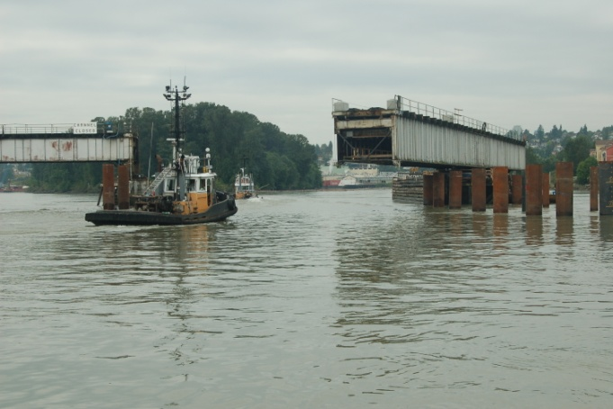 Seaspan, un exploitant de remorqueurs de la région, a également établi des procédures qui interdisent à ses remorqueurs tirant un chaland chargé en aval du fleuve de transiter par le pont ferroviaire Queensborough lorsque la vitesse du courant est supérieure à 4 nœuds.
