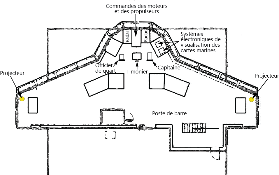 - L’officier de pont ne participait pas activement au pilotage du navire; ainsi, il n’y avait aucun partage ni aucune comparaison de données sur la position du navire entre lui et le capitaine.