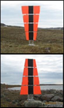 Pour aider les navires à franchir Chesterfield Narrows, la GCC a mis en place 2 paires de marques de navigation non lumineuses connues sous le nom de marques de jour (photo 2). Les 2 paires de marques sont séparées l’une de l’autre tant sur le plan de la distance que sur celui de l’élévation. Lorsqu’un navire approche d’une paire de marques et que les 2 marques deviennent alignées l’une par rapport à l’autre, l’une apparaissant au-dessus de l’autre, le navire reçoit le cap à suivre pour traverser en toute sécurité les eaux réglementées.