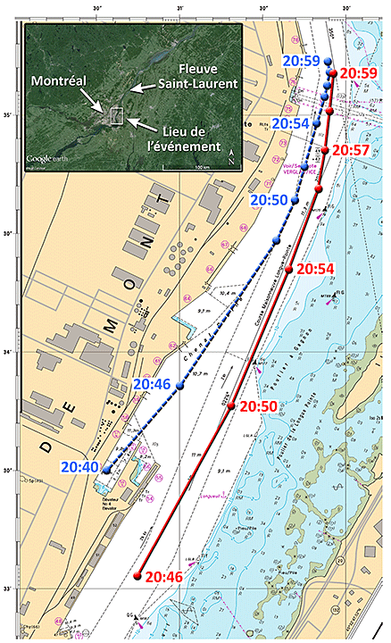 Au moment de l'événement, le ciel était clair, et les vents soufflaient de l'ouest à une vitesse de 5 à 7 nœuds. Le coucher du soleil a eu lieu à 20 h 20 ce soir-là. Il n'y a pas de marée au Port de Montréal, et la vitesse moyenne du courant dans le port est de 2 nœuds environ.