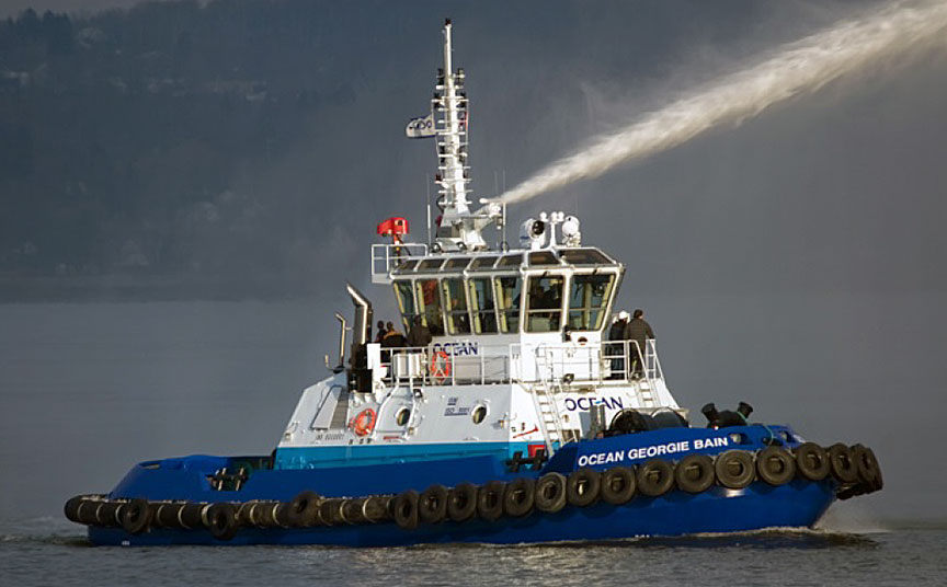 L'Ocean Georgie Bain est un remorqueur portuaire (photo 4). La passerelle est pourvue d'un système de passerelle intégré (SPI) qui permet la manœuvre par une seule personne et comprend des commandes intégrées de propulsion et de direction, un radar, un système de positionnement mondial (GPS), un système électronique de visualisation des cartes marines (ECS), 2 compas (1 gyroscopique et 1 magnétique), un SIA, un échosondeur, et 2 radios VHF. Le remorqueur est propulsé par 2 hélices omnidirectionnelles à entraînement en Z et est pourvu de l'équipement de lutte contre les incendies. Un siège au poste de conduite fait face vers l'avant, et le poste de conduite offre une vue sur 360 degrés. Sous la passerelle, le rouf principal comprend une cuisine et 3 cabines.