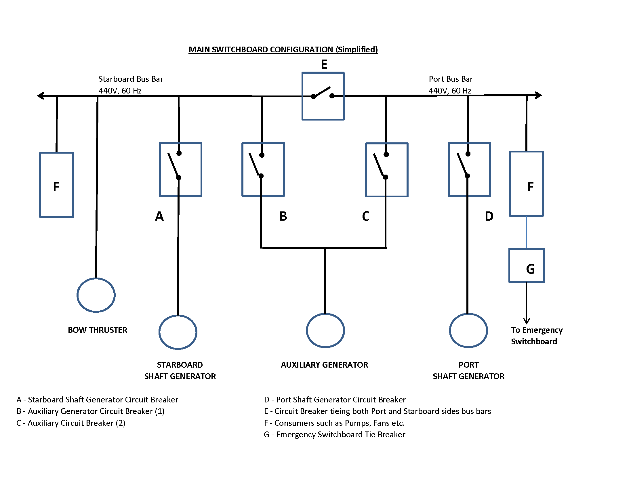 Dans l’événement en cause, il est probable que la fluctuation de la fréquence électrique a dépassé la limite maximale du bloc relais de protection, entraînant le déclenchement du disjoncteur et la panne de courant dans tout le navire.