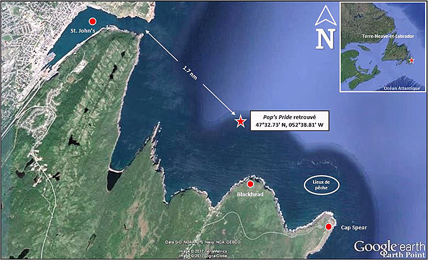 Le 6 septembre 2016, à 15 h 39, heure avancée de Terre-Neuve, on a signalé le retard à St. John's (Terre-Neuve-et-Labrador) du bateau de pêche Pop's Pride qui devait revenir du secteur de pêche au large du cap Spear avec 4 personnes à bord. Plusieurs bateaux ont pris part aux recherches. On a repêché les corps de 2 membres d'équipage qui portaient des vêtements de flottaison individuels; toutefois, la température de l'eau et la durée d'immersion des naufragés ont réduit leurs chances de survie. Le bateau submergé a été récupéré le lendemain. Les 2 autres membres d'équipage n'ont pas été retrouvés et sont présumés noyés.