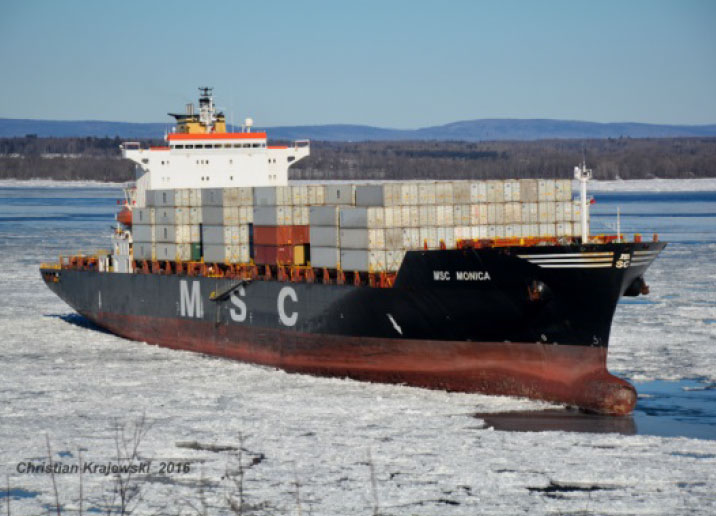Le 22 janvier 2016, le navire porte-conteneurs MSC Monica s'est échoué, sur le fleuve Saint-Laurent, à 1 mille marin au nord-nord-est de Deschaillons-sur-Saint-Laurent (Québec). Le navire a été renfloué le lendemain, avec l'aide de 3 remorqueurs, puis escorté jusqu'à Québec (Québec) pour être soumis aux inspections nécessaires. La coque du navire a subi des avaries légères, et les 4 pales de son hélice ont été lourdement endommagées. Il n'y a eu aucun blessé, et aucune pollution n'a été signalée.